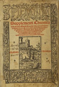 Foresti Giacomo Filippo, Supplementum Supplementi Chronicarum ab ipso Mundi Exordio... (Al colophon:) [Venetiis: opera & impensa Georgii de Rusconibus, 20 agosto 1513].
