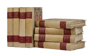 8 volumi in-8° (mm 195x145). Pagine 395, [1]; 383, [1]; 381, [1]; 392; 396; 364; 367 [i.e. 347], 1 bianca; 174. Buone condizioni di conservazione, fatta eccezione per qualche strappetto e occasionali macchie di inchiostro a rare carte. Esemplare in barbe. UNITO A: Id., Risposta [...] all'errata corrige del signor ab. Tentori. Pagine clxvii, 1 bianca. Gore d'acqua alle carte, bruniture in corrispondenza dello specchio di stampa di alcuni fascicoli. Legatura moderna in mezza pergamena con angoli e piatti in carta decorata. Titoli in oro su tassello rosso al dorso. Sguardie rinnovate. (8). Prima edizione. Cicogna 621: «Ognuno sa quanto importante sia l'opera del Gallicciolli e, quante curiosità di ogni genere vi sieno, specialmente riguardanti l'interne cose della città. Egli cita le fonti onde trasse; le quali oggidì essendo presso che tutte disperse, fanno tenere sempre più cara l'opera sua». Legata in fine di volume si trova la Risposta di Giambattista Gallicciolli all'errata corrige del signor ab. Tentori, spesso non presente.