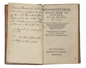 Giraldi Giambattista, Commentario delle cose di Ferrara et de principi de Este [...] tradotto per M. Lodovico Domenichi. In Fiorenza: appresso Lorenzo Torrentino, 1556.
