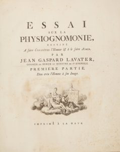 Lavater Johann Caspar, Essai sur la physiognomonie...Première partie (-quatrieme). Imprimé à la Haye: [Jacobus van Karnebeek], [1781]-1803.