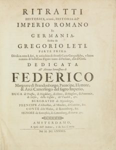 Leti Gregorio, Ritratti historici, overo Historia dell'imperio romano in Germania. Parte prima (-seconda). Amsterdamo: [Adrian de Winter], 1689.