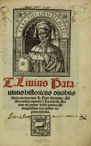 Livius Titus, Duobus libris auctus: cum L. Flori Epitome. Addito indice copioso et Leonardo Aretino de primo bello Punico. (Al colophon:) Venetiis: per Melchiorem Sessam & Petrum de Ravanis socios, 1520.