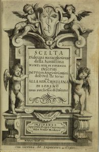 Lottini Giovanni Angelo, Scelta d'alcuni miracoli e grazie della Santissima Nunziata di Firenze... In Firenze: Appresso Pietro Cecconcelli, 1619.