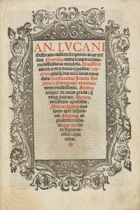 Lucanus Marcus Annaeus, Pharsalia [...] Novissime autem a viro docto expolita et [...] emendata, scribentibus Ioanne Sulpitio et Omnibono vicentino... (Al colophon:)[Venezia]: in aedibus Guilielmi de Fontaneto Montisferrati, anno Domini 1520 die...