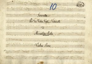 Manoscritti musicali. Parti d'orchestra: Violino I e II. Indicazioni manoscritte a matita rossa e blu alla carta del frontespizio. Dimensioni varie. Duetto segnalato nel catalogo tematico di Rolla con la sigla BI 161. SI AGGIUNGE: Duetto. [Inizio XIX secolo]. Manoscritti musicali. Parti d'orchestra: Violino I e II. Indicazioni manoscritte a matita rossa e blu alla carta del frontespizio. Dimensioni varie. Duetto segnalato nel catalogo tematico di Rolla con la sigla BI 145. SI AGGIUNGE: Duetto / Per / Violino e Viola / Dedicato [...] / a / Sua eccellenza il Sig. Conte Archinto [...]. [Inizio XIX secolo]. Manoscritti musicali. Parti d'orchestra: Violino e Viola (ultima carta parzialmente tagliata con perdita di testo). Dimensioni varie. Duetto segnalato nel catalogo tematico di Rolla con la sigla BI 35. SI AGGIUNGE: Serenata / Per due Violini, Viola e Violoncello. [Inizio XIX secolo]. Manoscritti musicali. Parti d'orchestra: Violino I e II, Viola. Manca la parte del Violoncello. Dimensioni varie. Serenata segnalata nel catalogo tematico di Rolla con la sigla BI 400. (4).