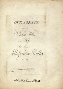 Rolla Alessandro, [Divertimento in re minore per violino solo con accompagnamento de Grand'Orchestra o di pianoforte. Dedicato a Girolamo Sormani]. Milano: Ricordi, [1834]. Numero di lastra 7227.
