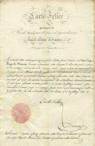 Raccolta di 25 tra lettere, permessi e 'assenti', alcuni alla famiglia Ripa di Meana, con firme di Vittorio Amedeo di Savoia, Carlo Emanuele, Carlo Felice, Vittorio Emanuele I, Vittorio Emanuele II. Datati XVII, XVIII, XIX secolo.