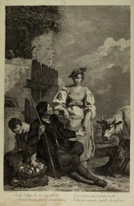Fabio Berardi, Scaltro villan, che steso qui sull'erbe Altro cerchi, altro guardi, or dimmi almeno Cosa ti piace più, le frutta acerbe C'ha nel canestro, o quelle c'ha nel seno? Da Giovan Battista Piazzetta.