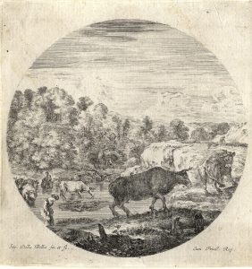 Stefano Della Bella, Mandria di armenti e due paesani al guado di un ruscello.