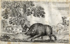 Acquaforte. mm 150x230. Foglio: mm 167x245. DVM, 733. Firmata a puntasecca "S. D. Bella" sulla lastra in basso a destra. Seconda tavola da Cacce a differenti animali, serie in nove fogli non numerati e senza il nome dell'editore. Bellissima prova nell’unico stato su carta vergellata apparentemente priva di filigrana. Rifilata all’impronta sul lato destro, piccolo margine in basso e di circa 10 mm a sinistra e in alto. Applicata su vecchio supporto. Traccia di alcune macchie e di fioriture localizzate alle estremità del foglio. Per il resto ottima conservazione.