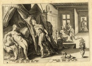 Hendrik Goltzius, Mercurio entra nella stanza di Herse dopo aver mutato Agraulo in pietra. 1590