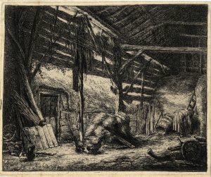 Acquaforte. mm 158 x 193. Foglio: mm 166x199. Godefroy, 23. Firmata e datata "Av Ostade 1647" sulla lastra in basso a sinistra. Piccoli margini oltre l’impronta del rame. Ottima prova nel definitivo X stato su X – con l’area illuminata alle spalle della donna ombreggiata da tratteggi orizzontali – stampata con buon contrasto e tonalità su carta vergellata priva di filigrana. Al verso in alto, presenza di alone all’angolo destro e residui di carta per distacco da precedente supporto ad entrambi. Altrimenti conservazione ottima.