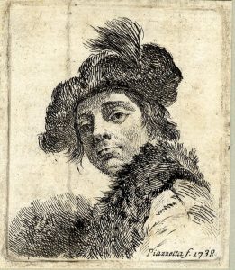 Firmata e datata "Piazzetta f.1738" sulla lastra in basso a destra. Ottima prova dal frontespizio di Studi di pittura, già dissegnati da Giambattista Piazzetta ed ora con l'intaglio di Marco Pitteri..., pubblicati a Venezia nel 1760 da Giovanni Battista Albrizzi. II stato su II dopo la riduzione della lastra di circa 1 cm in alto (attualmente è noto un'esemplare in I stato conservato all'Albertina di Vienna, folio 85, n. 3324). A tuttoggi resta l'unica acquaforte incisa dal Piazzetta. Bellissima prova con piccoli margini oltre l’impronta. Conservazione ottima.