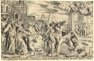 Enea Vico, Virgilium eludens meritas dat foemina penas (La vendetta di Virgilio). Romae, 1542.