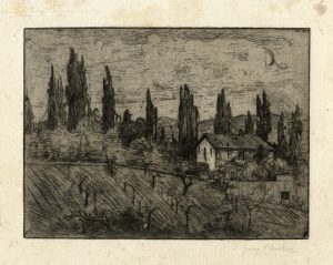 Acquaforte. mm 145x196. Foglio: mm 245x285. Bossaglia-Mavilla, p. 172, OP. 29. Firmata a matita in basso a destra. Rarissimo esemplare di un'incisione di cui finora l'unica traccia rimasta era solo la matrice in zinco conservata presso le civiche collezioni di Cesena.