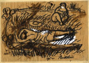 Penna, inchiostro bistro e tempera bianca su velina. mm 218x310. Firmato e datato in basso verso destra. Tracce di vecchie pieghe, parzialmente incollato su cartone.