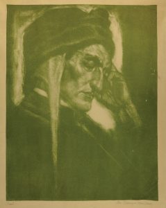 Litografia in verde chiaro. mm 515x405. Foglio: mm 586x450. Firmata e titolata matita in basso ai lati: "Dante – Stein-Radierung von Karl Bauer". SI UNISCE: Id., Schopenhauer. 1900 ca. Litografia in verde scuro. mm 335x375. Foglio: mm 480x550. Firmata e titolata a matita in basso ai lati:"Schopenhauer. I. Auffass - Karl Bauer". Prima litografia di Karl Bauer. (2). I opera: Un piccolo marginale e qualche lieve abrasione nell’inciso. II opera: Ottimo esemplare. In passe-partout.