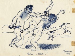 Penna e inchiostro blu. mm 209x278.Titolato, firmato e datato in basso. Due segni evidenti di scotch nel margine laterale destro.