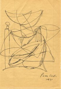 Penna e inchiostro di china su foglio protocollo a righe. mm 310x210. Firmato e datato a penna in basso a destra. Applicato con adesivo a passe-partout.