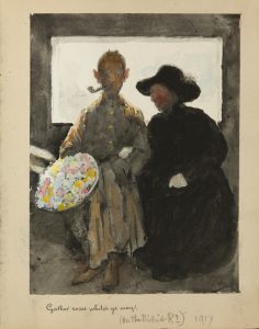 Album (mm 245x190) contenente 33 disegni incollati, realizzati a penna, matita e acquarello. Legatura in tela. Gustoso album di soggetti vari, umoristici, ritratti scenette di genere e vedute di città, quasi tutti sottotitolati e alcuni datati. Titolo dell'album manoscritto al foglio di guardia anteriore. Segni d’uso.