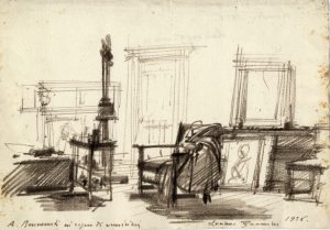 Pastello marrone su carta a mano. mm 230x330. Firmato datato e dedicato.