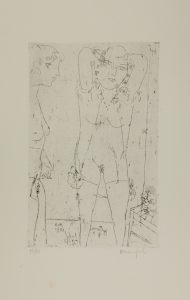 Acquaforte. mm 265x175. Foglio: mm 500x350. Firmata e datata in lastra. Firmata e numerata a matita. Es. n. 17/30. SI AGGIUNGE: Giovanni Omiccioli, Spiaggia. 1966. Litografia a colori. mm 250x405. Foglio: mm 475x700. Firmata, datata e numerata a matita. Es. n. 39/50. (2).