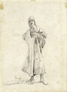Penna e inchiostro. mm 290x210. Firmato in basso a sinistra. Incollato su cartone di supporto.
