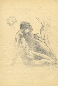 Litografia. mm 300x240. Foglio: mm 410x290. Firmata in basso a destra: "Nonni". Stampata su carta liscia avorio sottile. Esemplare rarissimo, forse unico, proveniente dall'archivio dell'artista. Pubblicato in: S. Dirani, Francesco Nonni figurinista e grafico, Faenza 2011, tav. 37, p. 111. Segni di pieghe.