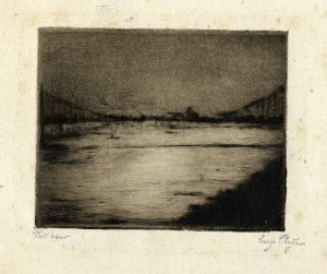 Acquaforte, acquatinta e puntasecca. mm 100x125. Foglio: mm 200x240. Rarissima incisione giovanile probabilmente da datarsi al tempo della frequentazione della scuola d'incisione diretta da Celestino Celestini all'Accademia di Firenze.