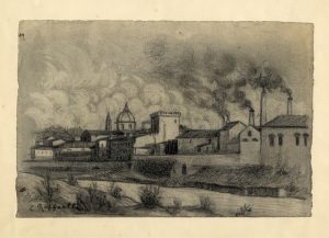 Carlo Raffaelli, Veduta di Firenze con le officine della Pignone.