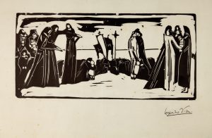 Xilografia. mm 180x370. Foglio: mm 413x555. Fini 128. Firmata a penna in basso a destra. Seconda tavola dell'album Il martirio (1915) in prova tirata a parte su carta grave liscia. Nell'album le tavole non erano firmate. SI UNISCE: Id., Ragazza che si pettina. 1910-1915. Xilografia. mm 195x120. Foglio: mm 495x345. Fini 8. Rara ristampa su carta grave bianca liscia. Fini dichiara: "Tiratura originale 20-25 esemplari. Poche ristampe". (2). Lievi ingialliture ai margini.