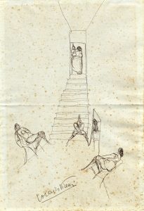 Penna a inchiostro bruno su carta grigia con filigrana Mgnani mm 320x215. Firmato a penna in basso. Pubblicato in I. Cardellini Signorini, Lorenzo Viani, Lucca 1978, n. 208. Leggere macchioline di foxing.