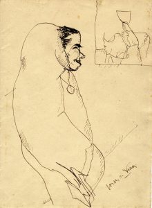 Penna a inchiostro bruno su carta avorio. mm 330x240. Firmato in basso a destra. Al verso firma stampigliata controfirmata per autentica da Amelio Vivaldi genero dell'artista, con dicitura a penna: 'La finestra sui campi' di L. Viani".