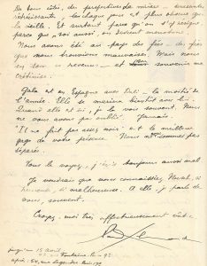 amicaux avec Gala, qui va bientôt épouser Dali. « Nous préparons avec plus de difficultés matérielles que jamais les n°s 5 et 6 de notre revue. Le texte que vous avez envoyé à Breton s’adapte parfaitement à tout ce que nous voulons prouver - ou servir, ce qui est la même chose. Ces nos paraîtront au plus tard le 15 mai ». Il le prie de demander à Alquié, qu’ils connaissent mal, s’il veut bien collaborer à la revue : « S’il n’avait pas de textes, nous serions heureux de publier des fragments de la lettre écrite dernièrement à Breton ». Éluard revient de deux mois de sanatorium en haute-Savoie, plus fatigué et plus déprimé qu’avant : « La vie est de plus en plus dure pour moi. De tous côtés, des perspectives de misère - écrasantes, rétrécissantes, chaque jour est plus obscur que la veille. Et surtout parce qu’on s’y résigne, parce que, soi aussi, on devient monotone. Nous avons été au pays des fées - des fées que nous trouvions mauvaises. Mais nous en sommes revenus - et son souvenir me crétinise. Gala est en Espagne avec Dali - la moitié de l’année. Elle se mariera bientôt avec lui. Quand elle est ici, je la vois souvent. Nous ne nous avons pas oublié. Jamais. Il ne fait pas assez noir est le meilleur gage de votre présence. Nous ne nous sommes pas séparés. Vous le voyez, j’écris toujours aussi mal. Je voudrais que vous connaissiez Nusch, si heureuse, si malheureuse. À elle, je parle de vous, souvent »...