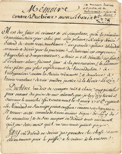 Alexis Piron (1689-1773) poète et auteur dramatique. Manuscrit autographe, Mémoire contre Duchêne mon libraire, [1763] ; cahier petit in-4 de 20 pages. Long mémoire contre le libraire Duchêne, soigneusement mis au net, avec de beaux effets...