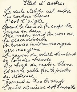 Pierre Reverdy (1889-1960). Poème autographe, Filet d’astres ; 2 pages et demie in-4 à l’encre de Chine. Beau poème de l^ (1919), recueilli en 1945 dans Plupart du temps : poèmes 1915-1922. « La seule clef du ciel entre les rochers blancs...