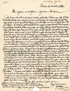 Gaspare Spontini (1774-1851) compositeur. L.A.S., Berlin 20 novembre 1844, à Ruggiero Colini, prieur et président de la régence des institutions pieuses à Majolati ; 1 page in-4, adresse au verso avec marques postales ; en italien (portrait...