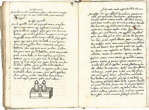 Incipit epistola prima, et verissima. De transmutatione metallorona. puis 2e lettre sur la pierre philosophale, avec des références à Raymond Lulle et à Honorius Philadelphus (13 ff, suivis de descriptions d’opérations alchimiques). Raymondus Lullus, ou Raymond Lulle (1232-1315). Tractatus de Lapide Philosophica. seu quintessentie, puis Lapis vegetabilis (6 ff.). Liber Fenicis. (1390), traité en 10 chapitres et appendice sur la pierre philosophale (super lapidem Philosophorum) (12 ff.). Suivi d’un traité italien sur l’art de la transmutation : « Illm Sigr per havere la cognoscenza di questa arte preciosa et dimendata transmutatoria »., en 11 chapitres suivis de la Seconda Quita Essentia en 4 chap. (13 ff.). Raymond Lulle. Epistole Raymondi Lulii de accuntatione lapidis philosoforum ad Regem Robertum (3 ff., avec dessin à la plume d’un double alambic). Arnauld de Villeneuve (1238-1313). Incipit Roseta novella Magistri Arnaldi de Villanova (3 ff.), suivi de divers secrets d’alchimie en latin ou italien (5 ff.). Raymond Lulle. Liber lucis mercurionem. (9 ff.). Suivi de la Practica du même, précédée de la table alphabétique des signes alchimiques (15 ff., la fin manque), avec dessin à la plume d’un grand vase, et diverses expériences et recettes sur la conservation du corps humain, l’or potable, l’or fin, la pierre philosophale.