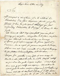 ensemble relatif aux expériences aérostatiques faites par Blanchard, notamment à l’étranger, comme en Allemagne (il exécuta son 15e vol en 1785 à Francfort), ou aux États-Unis (le 9 janvier 1793, il effectue sa 45e ascension à Philadelphie réalisant ainsi le premier voyage aérien aux États-Unis). Liège 25 octobre 1786, minute de lettre à l’Empereur : « Plusieurs seigneurs de la cour de votre Majesté m’ont souvent témoigné le désir de me voir faire une expérience aerostatique à Vienne », mais il attend les ordres de S.M. Berlin 4 septembre 1788, au Roi de Prusse : « Il manquait à ma gloire, et à la célébrité de l’aérostation d’en faire l’expérience sous les yeux d’un Héros et d’un des plus grands Roys qui font aujourdhuy l’admiration de l’Europe [.] Cette découverte étoit trop interessante pour n’en faire hommage qu’à ma patrie. L’aiguillion de la gloire m’a soutenu dans mes laborieuses recherches et dans mes traveaux. L’homme qui se consacre aux progrès des Sciences appartient à l’univers. [.] Avant la fin de ce mois je puis réaliser mon expérience. Trois milliers de vitriol (partie de matieres necessaires à l’expérience) sont déposés aux douannes de V.M. ». (au dos, copie de la réponse de Frédéric-Guillaume). - Lettre tardive à M. Mercier : « Je désirerois bien que nous puissions gagner quelque chose cette hiver, mais j’ay bien peur qu’il ne faille attendre le printems. Si je ne suis pas alors a tems d’opérer, au moins je seray en état de comander. [.] Je crois qu’au printems, il y a quelque chose à faire avec l’administrateur de Tivoly ». Lettres de fonctionnaires municipaux ou de personnalités invitant Blanchard à poursuivre ses expériences dans leurs villes, en France (Valenciennes, Aix), en Europe (Bâle, Berlin, Cadix, Hanovre, Leipzig, Lunebourg), en Amérique (Charleston, New-York, Philadelphie) ; propositions d’érections de monuments en hommage à ses ascensions, etc. Lettres, notes ou pièces diverses de collègues scientifiques, d’amis ou de notables particuliers, d’admirateurs, etc... Quelques manuscrits de chansons ou épigrammes célébrant les vols en ballons de Blanchard ou Montgolfier, dont un long poème en latin, In Globum aerostaticum, etc. Plus une L.A.S. de Boissy d’Anglas (29 décembre 1806) au ministre de l’Intérieur au sujet d’un projet de monument célébrant la première expérience aérostatique faite à Annonay par MM. Montgolfier le 5 juin 1783...