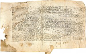 prisonnier des anglois noz ennemis », pour adoucir les tourments de sa captivité. On joint une charte notariée de 1330, Philippe VI régnant, concernant Jacme Baritan et l’achat d’une vigne à Campmas.