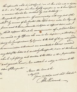 Sir Benjamin Hallowell (1760-1834) amiral anglais. L.A.S., 9 Great George Street [Londres] 12 avril 1815, à My Lord [probablement Lord Melville, Premier Lord de l’Amirauté] ; 3 pages in-4 ; en anglais. Très intéressante lettre sur l’évasion...