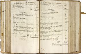parchemin (reliure usagée). Registre comptable du quartier-maître trésorier de Royal-Roussillon, tenu mensuellement, compagnie par compagnie ; les comptes sont signés par les capitaines Bedanson, Coll, de Montfaucon, Bonnet, Launay, Domenech, Gironde, de Grandmaison, de Bernetz, Anglefontaine, Capy, Bedamont, Derons, de Bassignac, Pradel, etc. Chaque compte mensuel indique la présence du capitaine et le nombre d’hommes dans la compagnie (30, en général), lui tient compte de la masse (retenues faites sur la paye des soldats), et éventuellement du prix du chauffage ou du logement, des quartiers de pension, et de la somme portée en compte depuis le mois précédent. Suit une liste plus longue de frais : le prêt (somme allouée pour l’entretien du soldat), le chirurgien-major et des journées d’hôpital, le prix des engagements, la capitation, le fifre, le port de lettres ou d’équipages, des retenues faites par les trésoriers d’Aix, Perpignan, Toulouse, Corté, des frais extraordinaires... Le registre permet aussi de lire les mouvements du régiment. En février 1739, on tient compte de 3 jours de route des compagnies, en mars, 16, et en avril 1739, 10 jours d’étape de marine, puis en mai, un seul, avant l’arrivée du régiment en Corse, où il participe à la première pacification de l’île... En juillet 1739 paraissent les premiers jours d’hôpital à Ajaccio, et en octobre il est question d’un détachement à Bastia... Les frais de l’état-major se multiplient, et on commence à noter des paiements faits pour des soldats morts... En décembre 1739, on récapitule le décompte de la viande pour les 6 mois de campagne, de mai à octobre, et celui des rations de pain et de riz, compagnie par compagnie, depuis l’arrivée du régiment en Corse ; décomptes semblables en octobre 1740 et avril 1741. Il est question de souliers accordés au régiment pendant la campagne, comme gratification... De retour sur le continent au printemps 1741, il est question de nouvelles recrues : transports, subsistances, entretien...