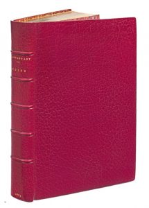 MAUPASSANT (Guy de). Toine. Paris, C. Marpon et E. Flammarion, s.d. [1885]. In-12, maroquin rouge janséniste, filet sur les coupes, dentelle intérieure, tranches dorées sur témoins, couverture et dos, étui bordé (Devauchelle).