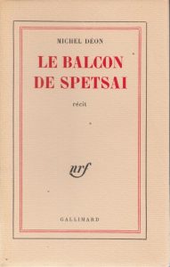 DÉON (Michel). Le Balcon de Spetsai. Paris, Gallimard, 1961. In-12, broché.