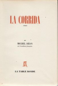 DÉON (Michel). La Corrida. Paris, La Table Ronde, 1979. In-8, broché, non coupé.