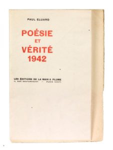 ÉLUARD (Paul). Poésie et vérité 1942. Paris, La Main à plume, 1942. In-16, broché, non rogné, non coupé.