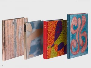 HUGNET (Georges). 1961. Paris, Chez l'auteur, 1961. In-8, demi-maroquin bleu, plats de plexiglas de couleurs métallisées, gravé et peint aux initiales de l'auteur, dos lisse, doublure et gardes de papier gauffré, couverture et dos, étui...