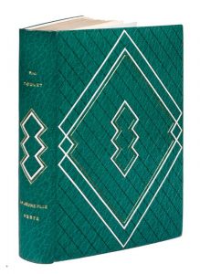 TOULET (Paul-Jean). La jeune fille verte. Paris, Émile-Paul frères, 1920. In-8, maroquin émeraude, plats ornés d'un treillis losangé à froid, décor de deux losanges entrelacés mosaïqués blanc et un autre doré, même motif répété au...