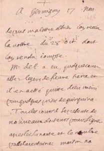 Minute en partie chiffrée au moment de l’affaire du quiétisme, lancée par Fénelon ; (…) M. de P (aris) a eu quelques accès assez légers de fièvre tierce et il en a esté quitte, Dieu merci, pour quelques prises de quinquina. Tous les jours il se présente de nouveaux docteurs pour signer après les Soixante, et le nombre passe la centaine ; mais on n’a pas voulu multiplier les signatures (…). Il n’y a rien à souhaiter de 34 [du Roi] et de 22 [M. le nonce] qui font tout ce qu’il faut et aussi bien qu’il se peut. J’ay fait à merveille la cour de Charenton auprès de Mrs de Pompone et de Torci, et je continuerai sans l’oublier dans l’occasion auprès de M. Noblet. Il y a longtemps que je n’ay veü M. le card. de Janson qui depuis le départ de Compiègne et durant tout Fontainebleau a travaillé à Beauvais. Vous ne sçauriez imaginer sur TTT [l’arch (evêque) de Reims] (…) mais 32 voit bien que Dieu bénira. Le crédit de CCC tombe beaucoup (…). L’abbé a bien fait d’avoir supprimer les remarques de [M. de Paris] qui donnaient à 54 [M. de Cambrai] ce qu’il demande (…). En partie publiée à la correspondance (tome X, lettre 381).