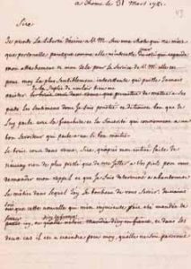 Le duc de Nivernais a reçu du cardinal son courrier accompagné de poèmes ; (…) Par rapport au vers sur lequel V.E. me fait l’honneur de me consulter et qui dit ainsi à tout moment veut les pousser au Port, c’est à la vérité un mauvais vers prosaïque et peu harmonieux, mais il ne pêche pas du côté de la mesure. C’est un vers de cinq pieds dont l’émistiche ou le repos, se trouve à la fin du second pied. C’est cette mesure de vers dont Marot s’est presque toujours servi et que Rousseau a remis à la mode de nos jours (…). Joint 5 poèmes du duc de Nivernais : Chanson à Madame la (Dsse) de Bouflers (sur l’air : je ne saurais danser) ; Vers adressés à Mlle de Civri âgée de huit ans ½ (…) et réponse faite sur le champ par Mlle de Civri ; copie des vers de M. Turgot intitulé traduction de la 10e Eglogue de Virgile en vers scandés comme les vers latins ; Vers de Mde de Nivernais à M. le duc de Nivernais qui lui avait demandé de ses cheveux.